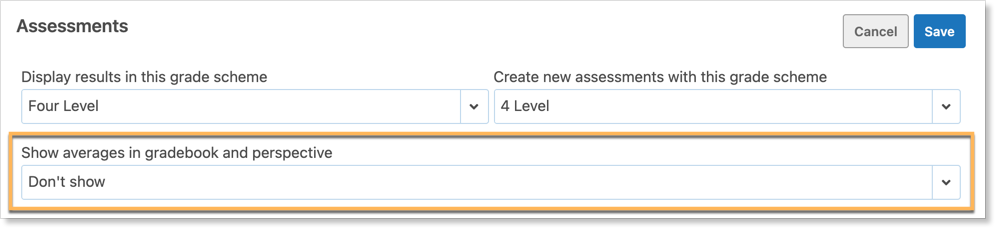 Teachers can also choose to suppress the averages in the Gradebook and Perspective. In the class setup form, Set Show Averages in Gradebook and Perspective to Don’t show.