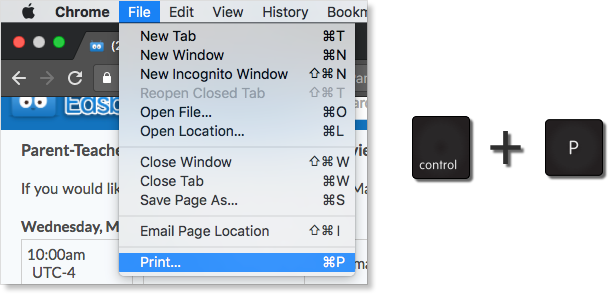 Parents can print their interview schedules by clicking File and then Print or by typing Ctrl+P on their keyboard.