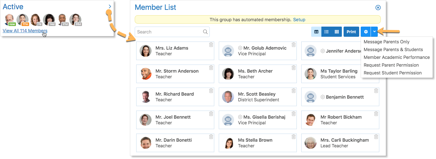 Teachers can message students, their parents, or both through the My Students Zoom, My Parents Zoom, Classes Zoom, and from within a class or group.