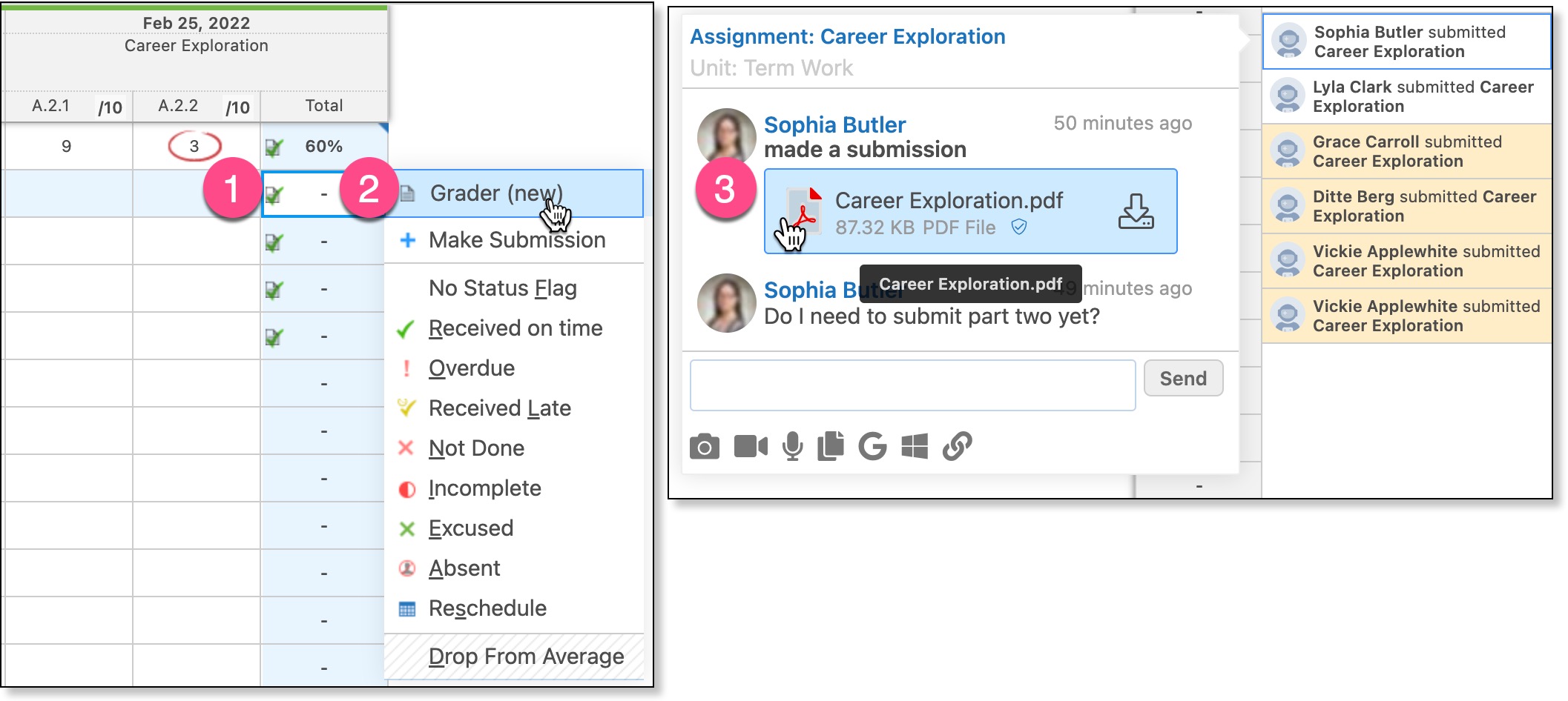 - Clicking the file name from the Gradebook’s Assessment Inbox.