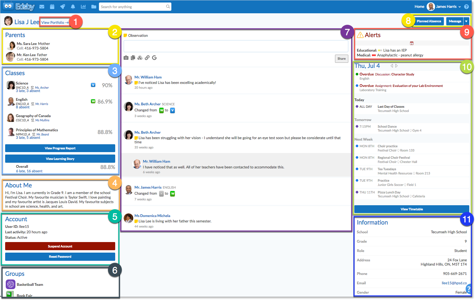 The Panorama gives teachers and administrators the information they need to plan for student success. The Panorama is a secure area, available only to teachers and administrators. As faculty members, teachers and administrators can see everything Edsby knows about the student.